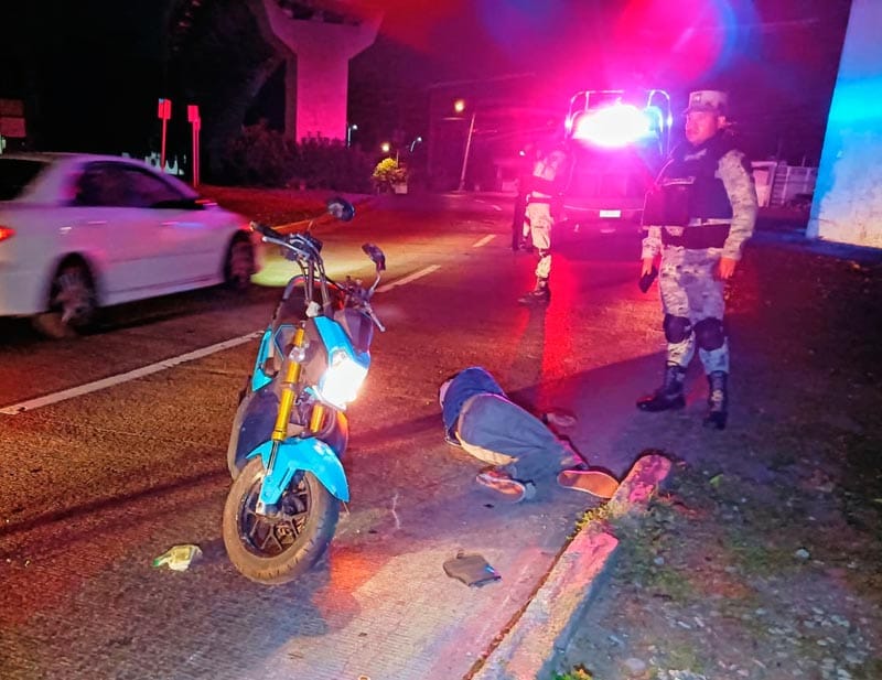 A la altura de la zona de la Boticaria, en la parte de abajo del distribuidor vial, un motociclista en supuesto exceso de velocidad y presuntamente ebrio, derrapó sobre la avenida Ejército Mexicano.