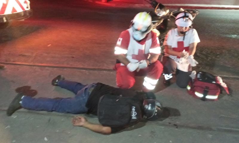 Paramédicos de Cruz Roja llegaron para atender al motociclista, quien no requirió ser trasladado.