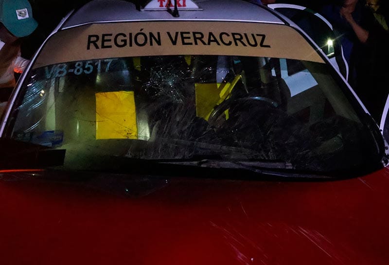 Esto se dio la noche del sábado, cuando el taxi VB-8517, era guiado por hombre identificado como “El Mojarras”, de nombre Efraín C. T., de 46 años de edad y circulaba en la citada carretera federal, pero al subir el puente de Paso del Toro, terminó por caerse de la unidad a la avenida Veracruz, quedando entre la maleza.