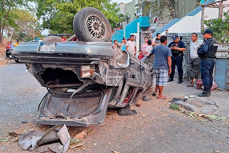 En el fraccionamiento Colinas de Santa Fe, al norte de la ciudad de Veracruz, hubo un aparatoso accidente al volcarse un carro, tipo Spirit, de color negro, cuyo conductor iba hacerle unas reparaciones al vehículo, lesionando a dos personas, madre e hija.