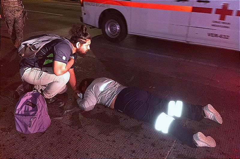 Los motorizados se levantaron, pero Sandra Guadalupe R. C, quedó en el piso y auxiliada por sus compañeros y posteriormente por paramédicos de Cruz Roja, quienes la trasladaron a un hospital para su atención médica.