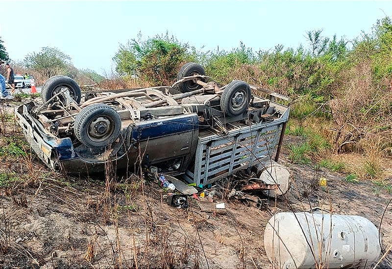 Esto se dio este domingo, en la carretera federal del kilómetro trece y medio en donde iba una camioneta estaquita, con chatarra. Se desconoce si una falla mecánica o una distracción causó que perdieran el control, terminando por volcar y saliéndose de la carretera.