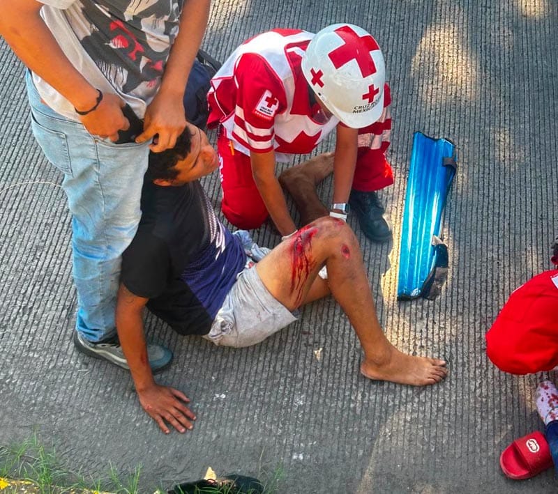 Técnicos en urgencias de la Cruz Roja arribaron minutos después para estabilizar a los lesionados y trasladarlos a un hospital cercano, donde médicos determinarán la gravedad de sus lesiones.