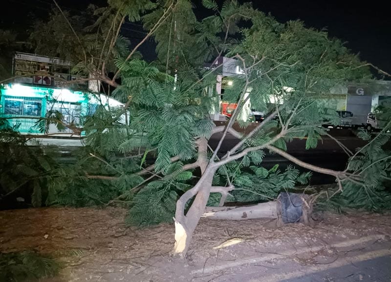 La camioneta tipo Tiguan se subió al camellón, derribó un árbol y terminó impactándose contra un poste de alumbrado público.