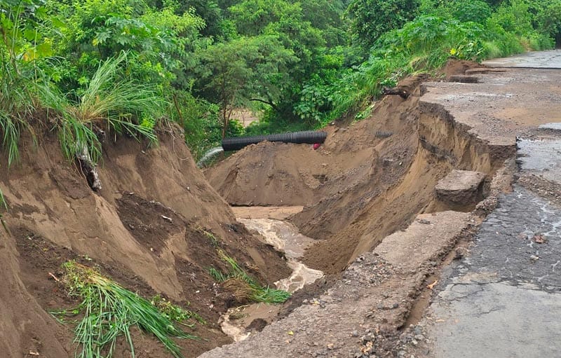 Vecinos denuncian que pese a los señalamientos de precaución, motociclistas siguen cruzando el área, exponiéndose a caerse hacia la ladera y ser sepultados por la tierra.