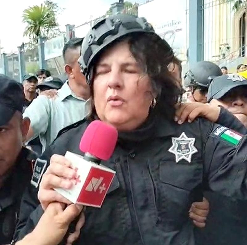 Cuando la situación parecía calmarse, ya por la tarde del martes, alguien tuvo la idea de disfrazar a la alcaldesa María Elena Solana Calzada de policía, para poder sacarla del palacio municipal y que pasara desapercibida.