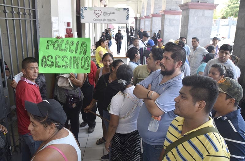 La muerte de un locatario del mercado municipal de San Andrés Tuxtla en condiciones poco claras, generó indignación entre comerciantes y obligó a la detención de ocho policías, además hubo actos vandálicos y la alcaldesa tuvo que ser rescatada con un disfraz de policía.