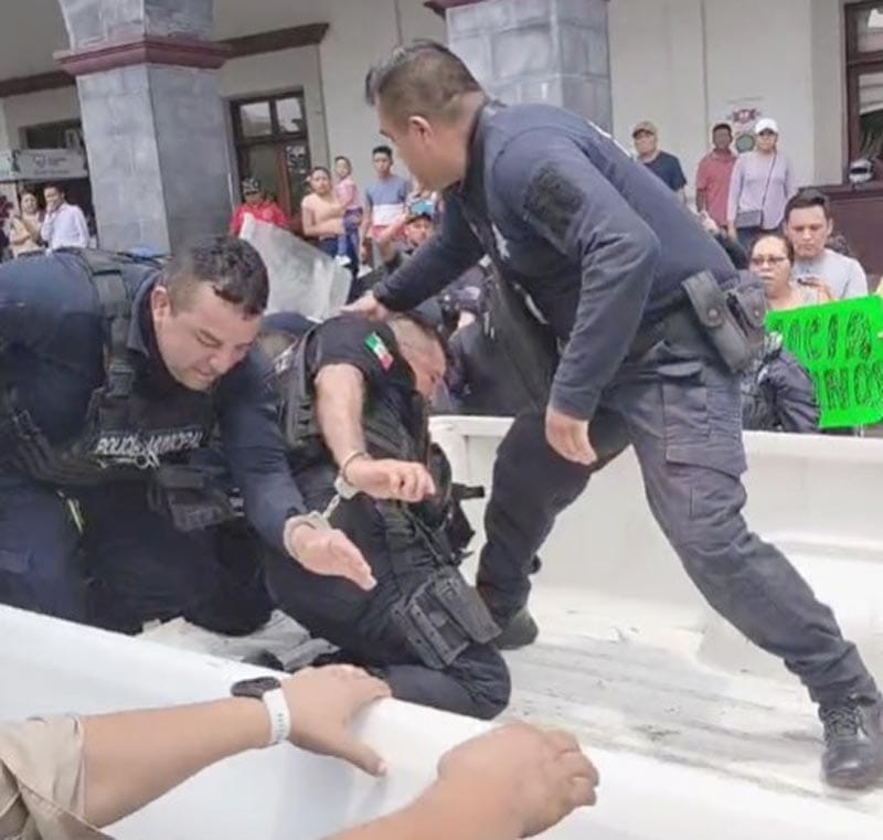 Mientras el grupo de manifestantes crecía y la policía municipal permanecía a la expectativa, detectives de la Policía Ministerial arribaron para detener a 6 policías municipales, inicialmente, luego regresaron por otros dos elementos, para presentarlos ante la fiscalía.