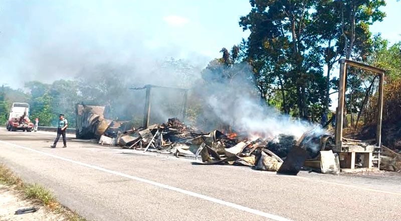 Un semirremolque de tractocamión se incendió este domingo sobre carretera Las Choapas-Ocozocoautla, en jurisdicción del municipio de Las Choapas, la unidad siniestrada transportaba paquetería.
