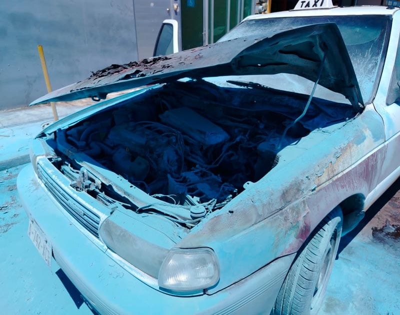 El conductor de la unidad, un Nissan Tsuru con número económico VB-42, relató que mientras avanzaba ayer sobre la avenida de las Palmeras, antes de llegar al cruce con avenida Viveros, notó que del cofre empezaba a salir humo.