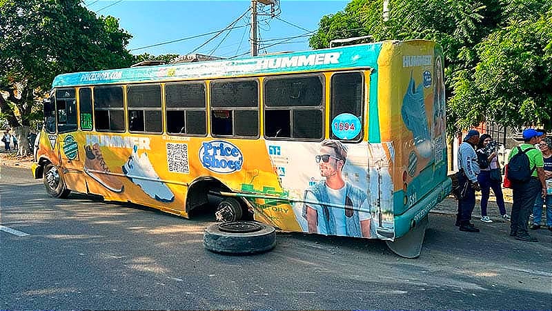* Pasajeros se salvan de milagro tras zafarse la llanta al autobús de la ruta 5ta Etapa