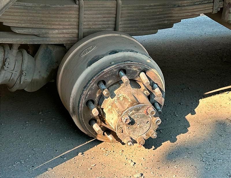 A decir del operador, la unidad se inclinó hacia el lado izquierdo y se escuchó un fuerte golpe, ya que el neumático trasero se desprendió y dañó parte del eje trasero.