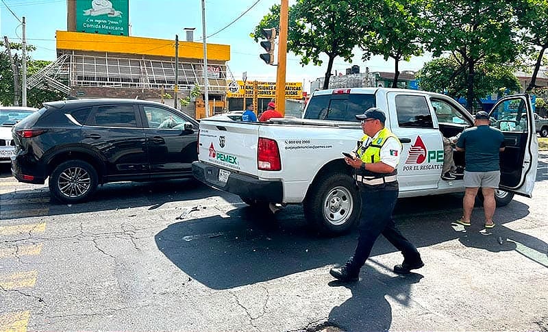 Al parecer el vehículo de Petróleos Mexicanos iba a presunto exceso de velocidad y se habría pasado la luz roja del semáforo.