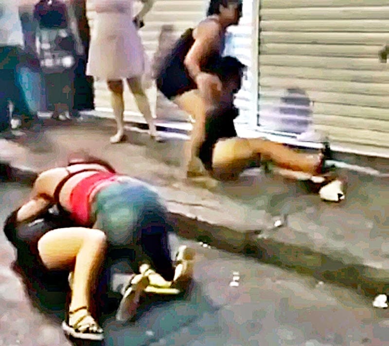 Luego de lanzarse insultos y palabras amenazantes, las jóvenes meseras se dieron de cachetadas, jalones de cabellos, empujones, “patadas”, y acabaron rodando por el piso, así como por la banqueta, frente a la entrada del bar “Victoria”.