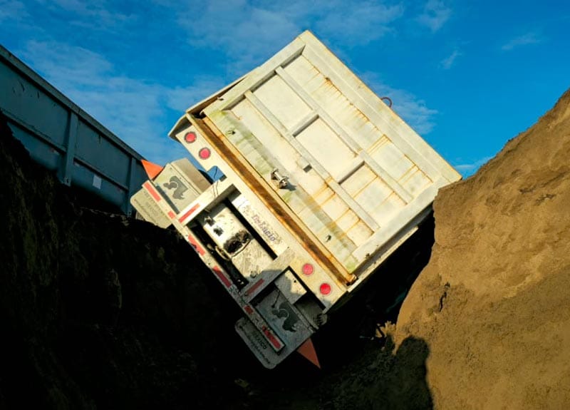 En este deslave un tráiler de color rojo se quedó atascado, ya que la tierra cubría un tercio de la altura de sus llantas por lo que no se podía mover para retirarse del lugar.