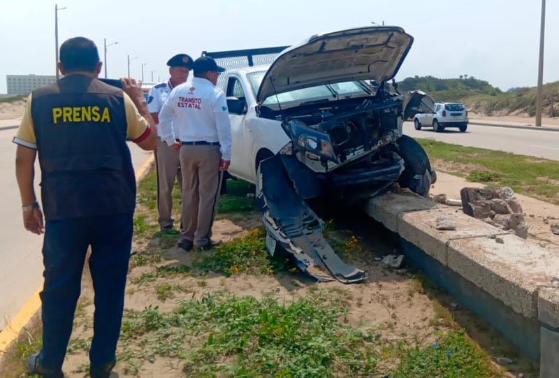 Fue así que perdió el control de la unidad, salió de la carpeta asfáltica hacia su costado izquierdo y terminó su trayectoria al impactarse de lleno contra una banca de concreto, la cual quedó completamente destruida por la fuerza del golpe.