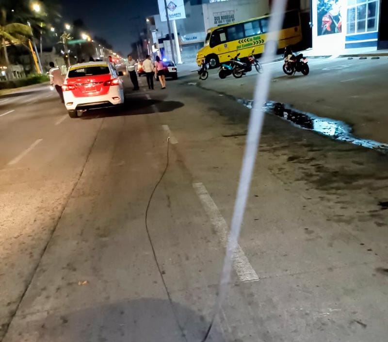 El motociclista quedó tendido y fue apoyado por un taxista, el cual usó la unidad de alquiler para acordonar el sitio y protegerlo que no fuera aplastado por otros carros.
