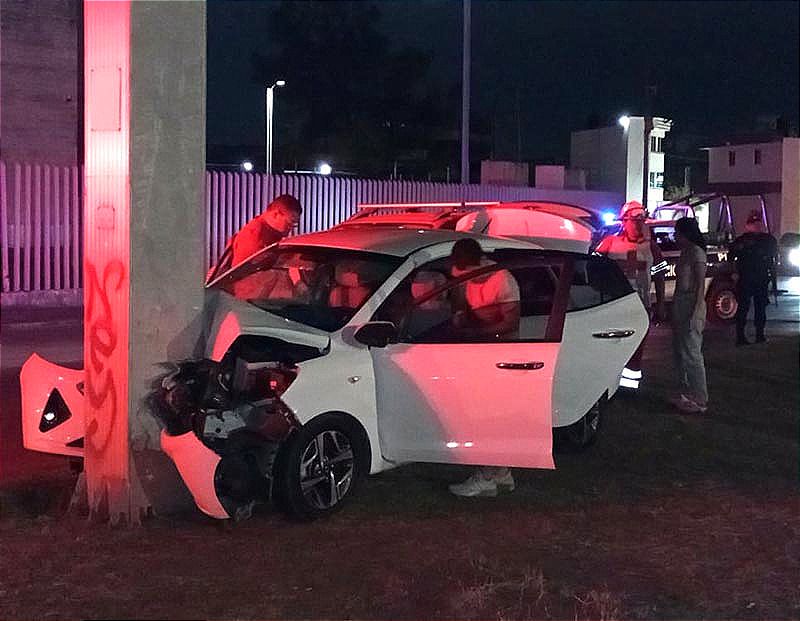 En la zona norte de la ciudad de Veracruz hubo un percance, este fin de semana, donde un carro Hyundai colisionó contra un señalamiento, dejando daños materiales y dos personas con lesiones leves.