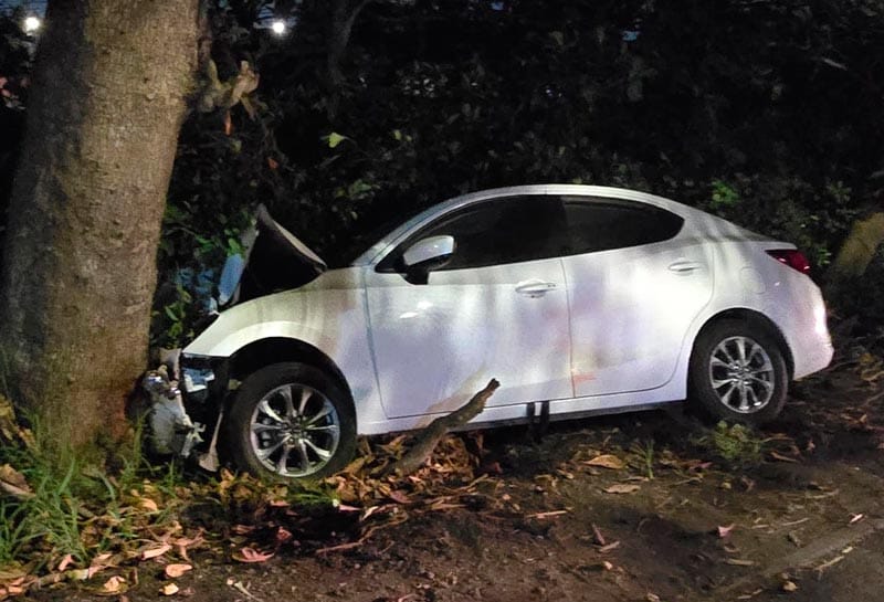 En la carretera federal 140 Veracruz-Xalapa, a la altura del fraccionamiento Geo Villas del Puerto, un automóvil marca Mazda de color blanco, sufrió un fuerte accidente al perder el control el operador y proyectarse contra un árbol.