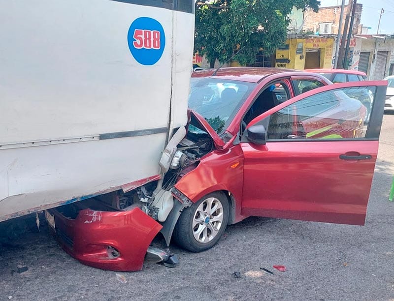 Lo anterior se dio con vehículo particular, un Ford Figo color vino, que chocó contra la parte trasera de un autobús de pasajeros de la ruta Calle 12, con número económico U-588, cuando ambos subían por la avenida Hernán Cortés.