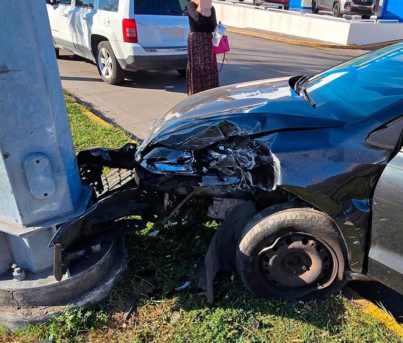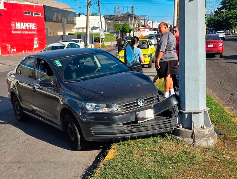 A altura de la colonia Vista Alegre de Boca del Río, una conductora perdió el control y se incrustó contra un poste de cámaras de vigilancia, luego de que presuntamente otro automóvil se pasó la luz roja del semáforo.