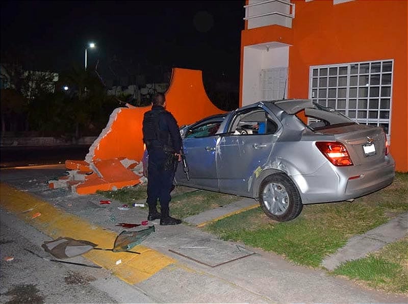 Según versiones iniciales, el conductor de un Chevrolet Sonic plateado perdió el control del vehículo, impactándose contra la barda de una vivienda marcada con el número 187-B.