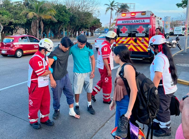 Paramédicos de la Cruz Roja arribaron al sitio para brindar atención prehospitalaria, donde se informó que uno de los involucrados presentaba lesión en un tobillo, mientras que el otro únicamente sufrió raspones.