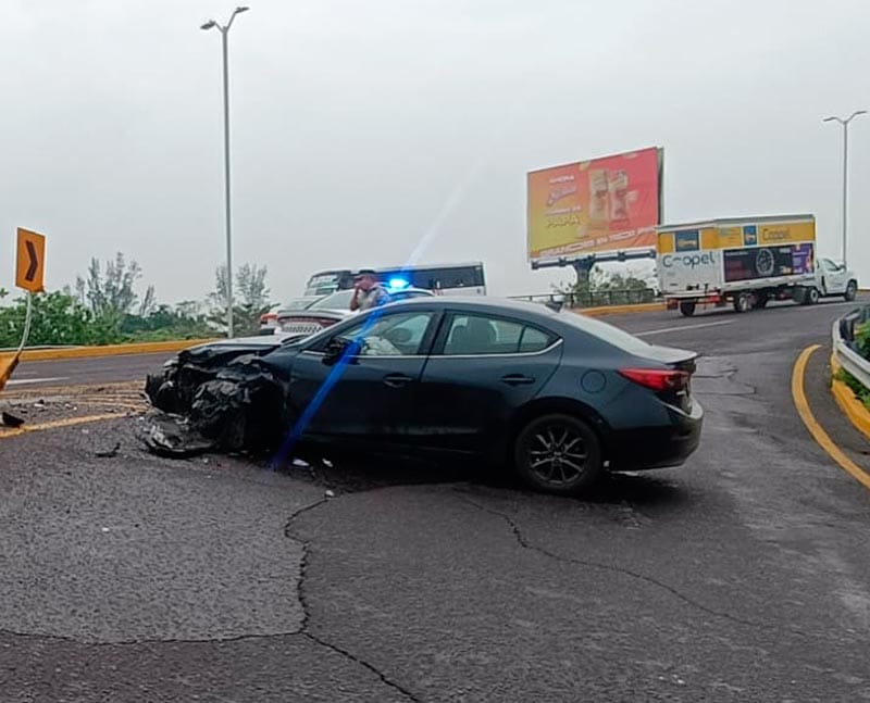 La mañana de este sábado se registró un aparatoso accidente automovilístico en el distribuidor vial de J.B. Lobos, donde un vehículo particular se impactó contra la estructura de contención, provocando daños materiales considerables y afectaciones al tránsito.