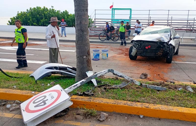 El incidente ocurrió ayer minutos después de las 6:00 a. m., cuando el conductor de un vehículo Renault Fluence, color plata y con placas YKF-503-B del estado de Veracruz, perdió el control de la unidad y se estrelló contra un señalamiento vial en el camellón central y terminó su trayecto contra una palmera.