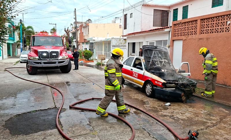 En el fraccionamiento Reforma una unidad del servicio de taxi se incendió, al momento que su operador se desplazaba en calles de la zona, quedando reducido a chatarra, pese a la movilización de los Bomberos Conurbados.