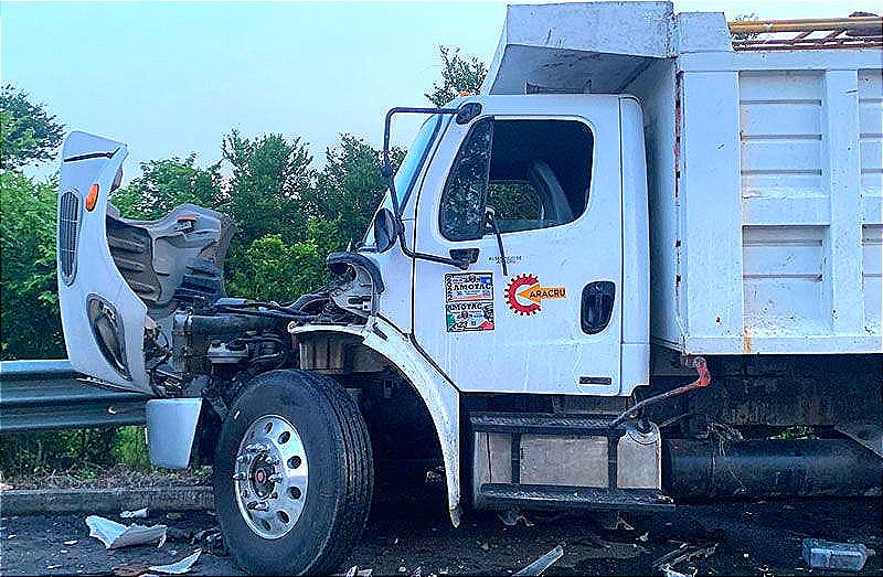 Poco antes de las 19:00 horas, el tractocamión con razón social Trasveta Express de México chocó por alcance contra un camión de volteo, razón social Aracu, al parecer por no guardar distancia prudente de circulación.