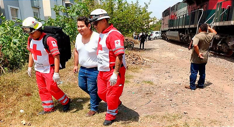 El sujeto quiso adelantarse a la locomotora de Ferromex, económico 4896, que iba sobre las vías que pasan junto al fraccionamiento, pero su vehículo se apagó en ese momento.