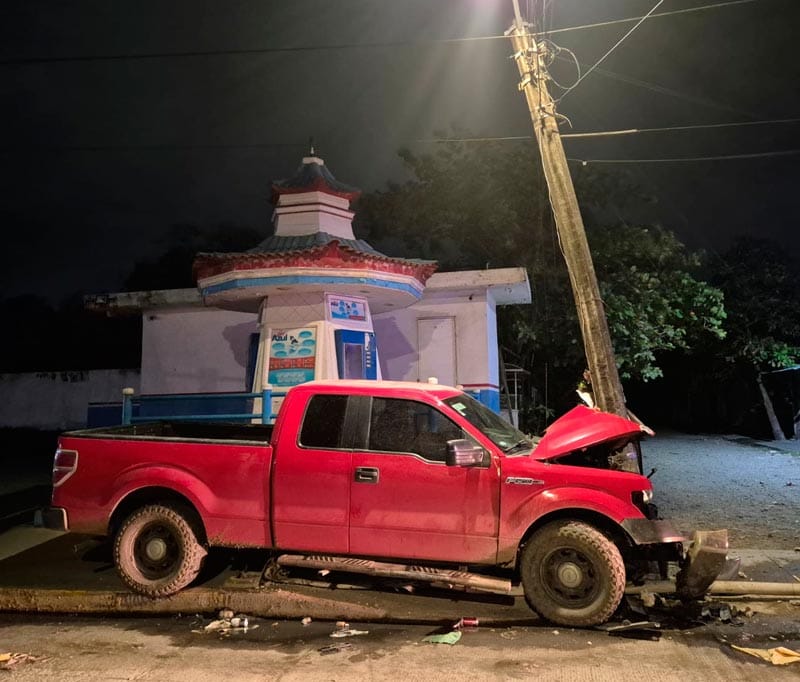 A la altura de la colonia Las Amapolas, en la ciudad de Veracruz, hubo un aparatoso accidente donde una camioneta Ford F-150, a exceso de velocidad, se impactó a gran velocidad contra un poste de concreto de la CFE.
