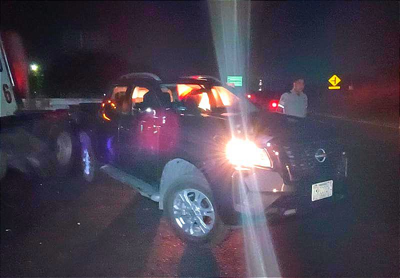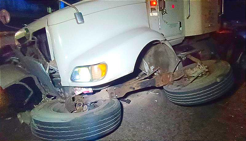 Ahí se vieron involucrados una camioneta marca Nissan, tipo Frontier, cuyo conductor intentó dar vuelta en “U”, indebida y provocó un percance con un tractocamión, en donde su operador intentó evitar el accidente, pero terminó impactándolo en el remolque, saliéndose el eje delantero.