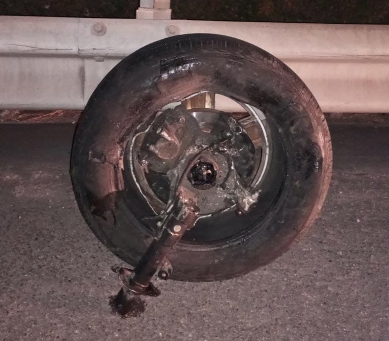 En la autopista circulaba Manuel Javier V., a bordo de su camioneta marca GMC, tipo Terrain. Repentinamente, por una posible falla mecánica, la llanta delantera de su camioneta salió volando y él perdió el control.