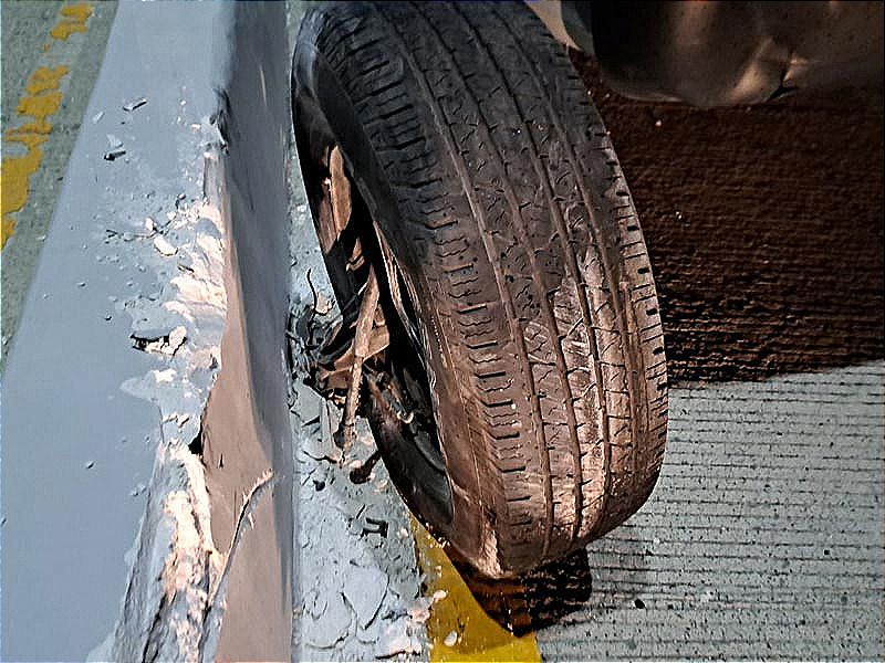 Por el fuere impacto, una de las llantas se le desprendió y la unidad acabó con severos daños materiales.
