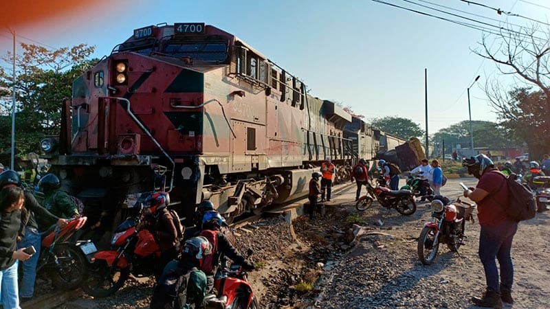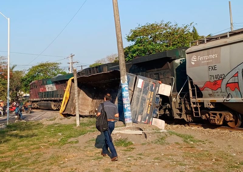 En la carretera federal Veracruz-Xalapa, a la altura de las vías del ferrocarril, frente a la empresa Tenaris-Tamsa, en el puerto de Veracruz, un tractocamión doble con doble remolque provocó un accidente al pretender ganarle el paso al tren, movilizándose los cuerpos de emergencia.