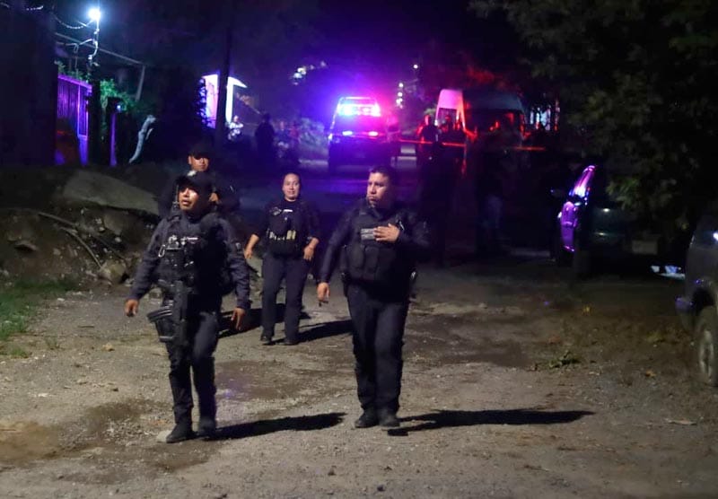 Acudió en minutos la patrulla SP-3068 de la SSP, constatando que en la vía pública estaban tendidos los cadáveres de tres hombres, con heridas por arma blanca (cuchillo).