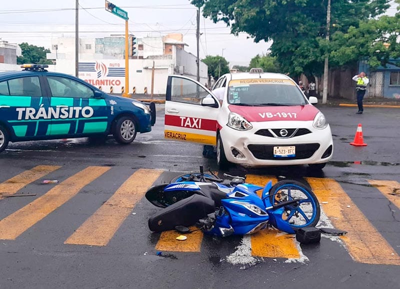 La mañana de este lunes se registró un accidente de tránsito en esta ciudad y puerto de Veracruz, dejando a una motociclista con una lesión severa en su pie izquierdo.