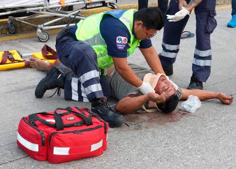 Testigos se detuvieron para auxiliarlo, ya que quedó inconsciente, tendido boca abajo sobre el pavimento.