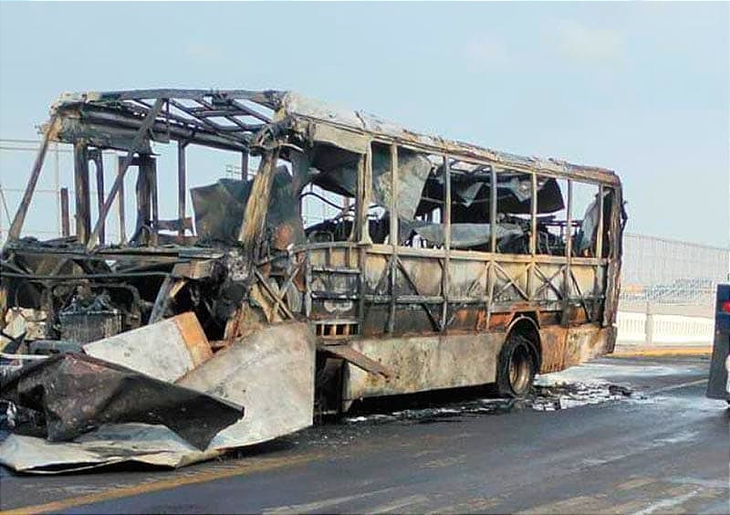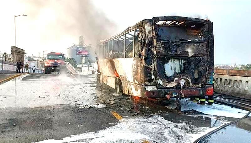 En la mitad del puente Morelos, en la ciudad de Veracruz, ocurrió el aparatoso incendio de un camión de pasajeros, de color azul, alertando a los conductores que reportaron a los cuerpos de emergencia.