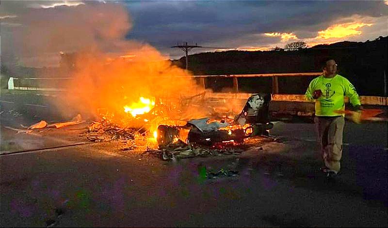 A las 05:00 horas del viernes, los operadores de la línea de emergencias C5i reportaron un vehículo en llamas en la llamada Riviera Veracruzana, justo en la entrada a Mata de Uva, por el puente El Jiote.