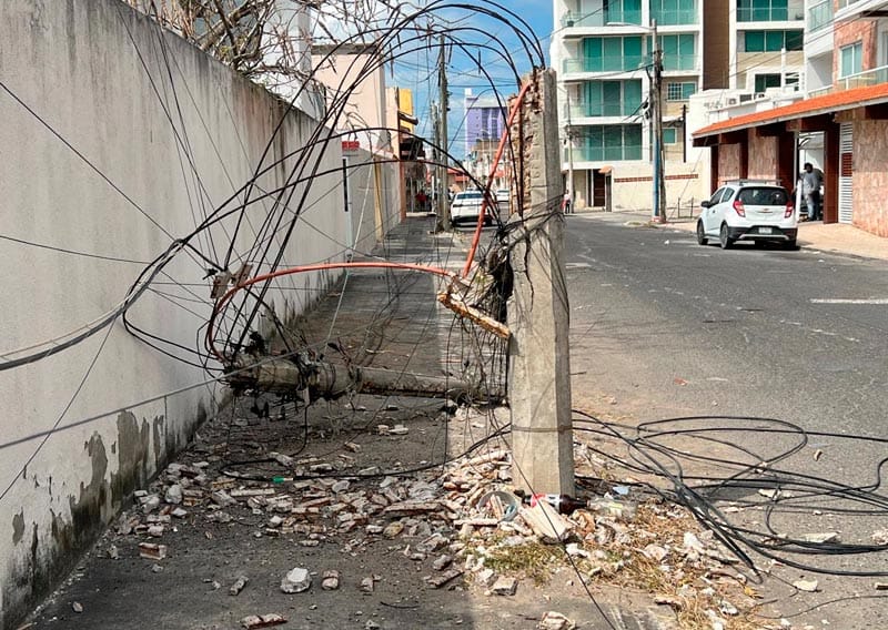 El poste pertenece a la Comisión Federal de Electricidad (CFE) y, según vecinos, existen otros postes en mal estado, lo que representa un riesgo tanto para los trabajadores como para los transeúntes.