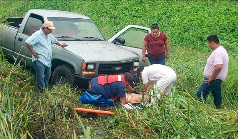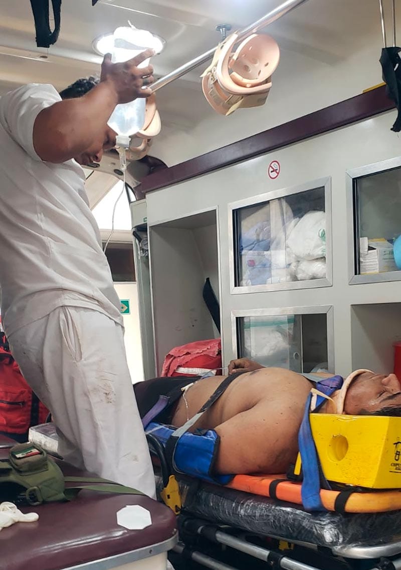 Paramédicos del SAMUV de Cosamaloapan auxiliaron al herido Laudino B. Chagala, de 19 años, quien presentaba lesión en cráneo, tórax y varios golpes contusos.