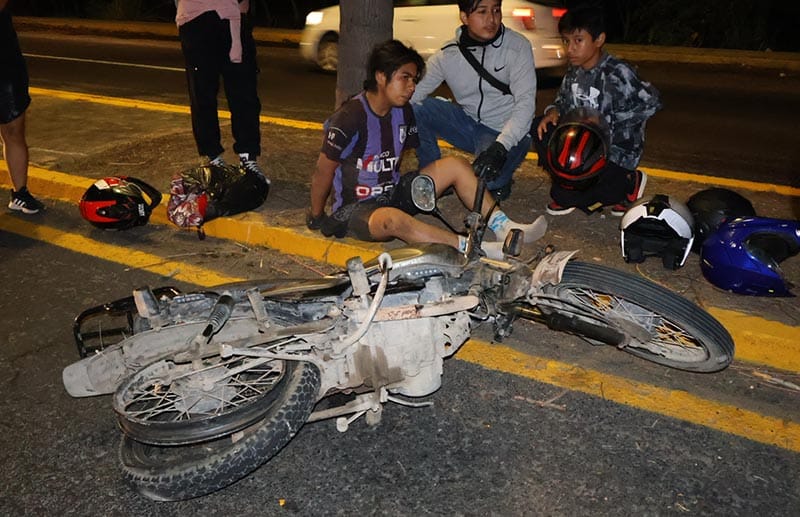 Familiares de los afectados llegaron al sitio poco después para hacerse cargo de la motocicleta y acompañar a los jóvenes en el proceso.