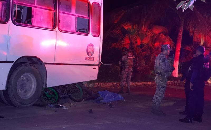 A la altura del fraccionamiento Residencial del Bosque, en la ciudad de Veracruz, un motociclista perdió la vida, al impactarse contra un autobús urbano, ruta Mata Cocuite 1584, el cual estaba estacionado, pero otra versión afirma que si iba en movimiento y se pasó a llevar al motociclista.