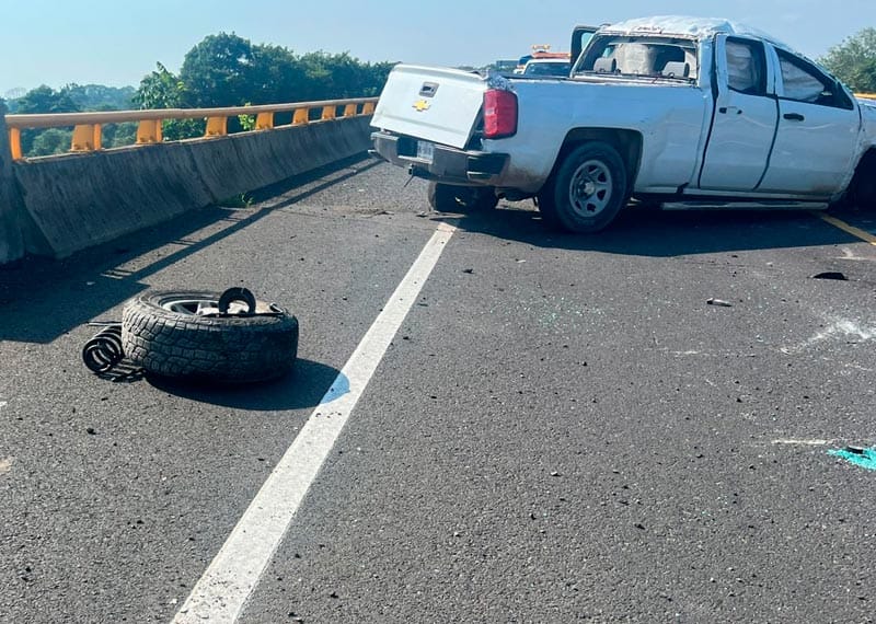 De acuerdo con los primeros reportes, una camioneta Chevrolet Silverado, doble cabina, que circulaba del puerto de Veracruz con destino a Pesquería, Nuevo León, habría sufrido una falla mecánica en una de las ruedas.