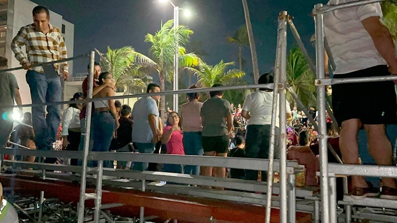 Una mujer joven que estaba en la última grada, disfrutando del desarrollo del segundo desfile del Carnaval de Veracruz, se vino abajo tras zafarse un tubular que sirve de soporte.
