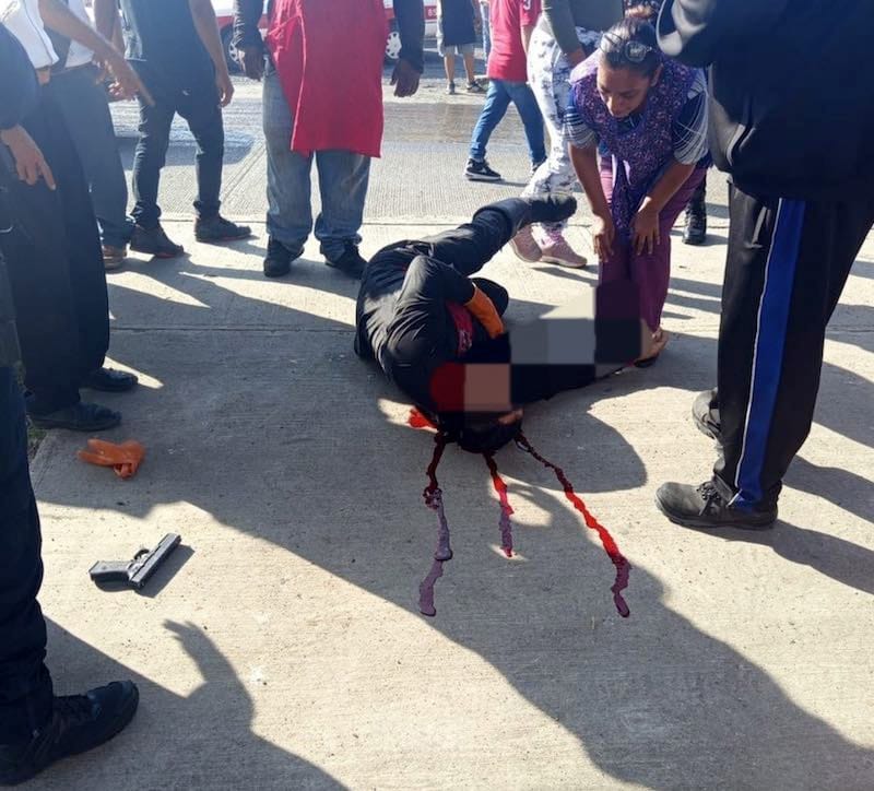 Una dama, comerciante de pescados y mariscos, fue privada de la libertad en el Parador Urbano, frente al mercadito de mariscos Santa Fe, en Poza Rica, uno de sus escoltas resultó lesionado por proyectil de arma de fuego.