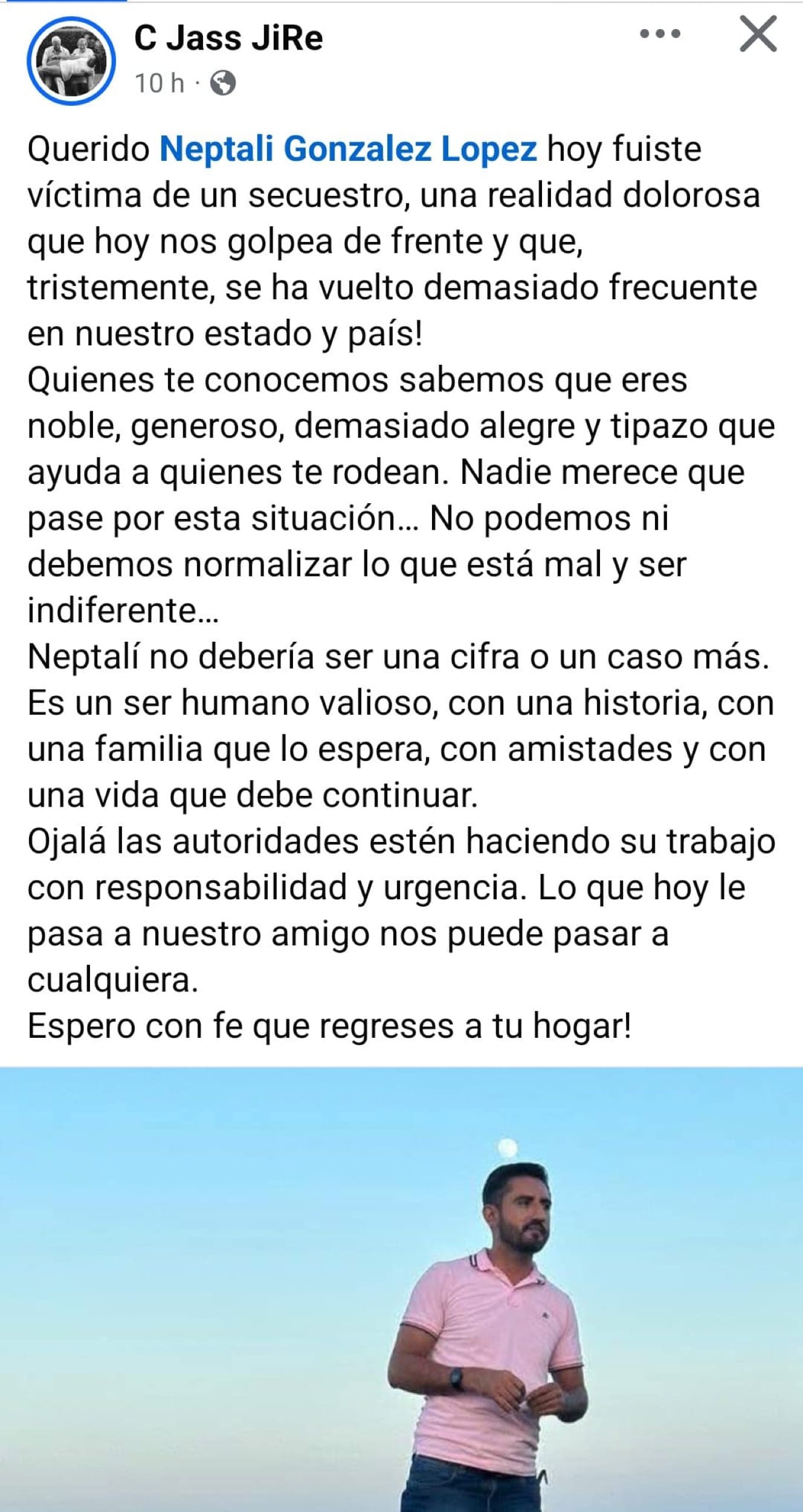 Familiares y amigos temen por la seguridad del empresario por lo que piden a las autoridades acelerar su búsqueda en Juchique y la región.